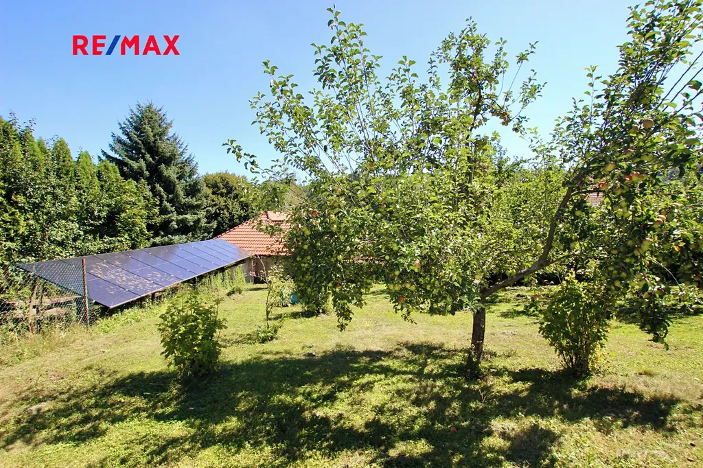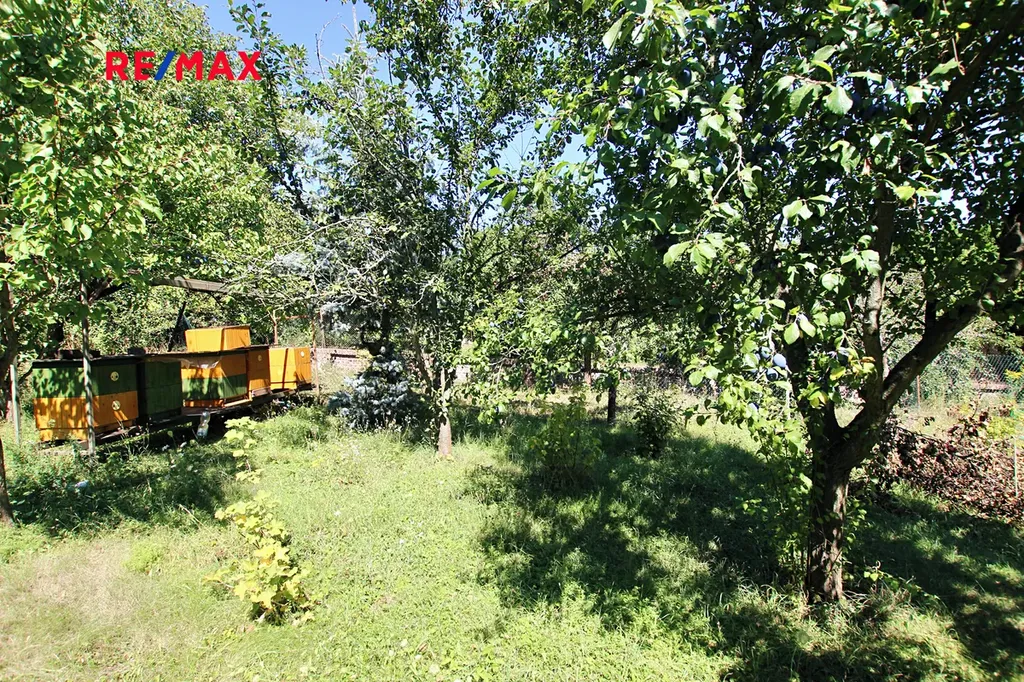 Zahrada o rozloze 2374 m2 je situována ve třech úrovních. Dole u domu je možnost parkovacího stání a za domem posezení. Nad domem je pak zahrada vhodná k posezení s ovocnými keři a ovocným sadem. Na pozemku je skleník, zahradní stavba s včelínem a solární panely.