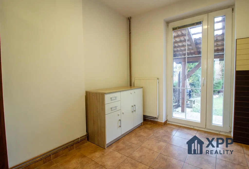 Dům je patrový, cihlové konstrukce, ve velmi dobrém stavu. Dispozici přízemí tvoří vstupní chodba, koupelna s vanou, samostatné WC, kuchyň a obývací pokoj. Z obytné části je vstup na terasu o výměře 15 m² a na zahradu. Součástí domu je také sklep a garáž o výměře 21,45 m².