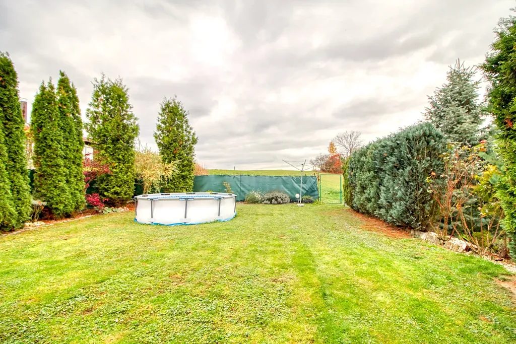 Dům nabízí podlahovou plochu 252 m², stojí na pozemku o velikosti 1 091 m² a díky energetické třídě B vás potěší velmi nízkými provozními náklady. V obývacím pokoji vás zahřeje krb na dřevo, k odpočinku láká velká terasa a kolem domu se rozprostírá zahrada plná zeleně a vzrostlých stromů, která poskytuje naprosté soukromí.