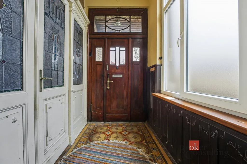 Dům nabízí velkorysé místnosti, vysoké stropy a dostatek denního světla. Jedná se o masivní zděnou stavbu s výraznou architekturou.