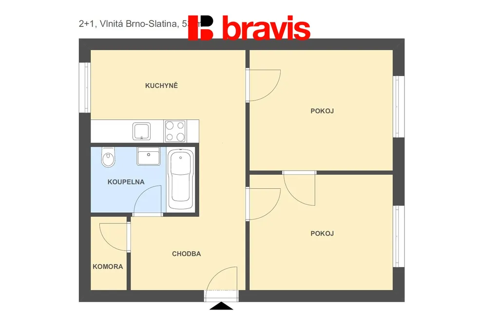 Byt o celkové výměře 53 m² se nachází ve 3. nadzemním podlaží cihlového domu bez výtahu. K bytu náleží sklepní kóje.