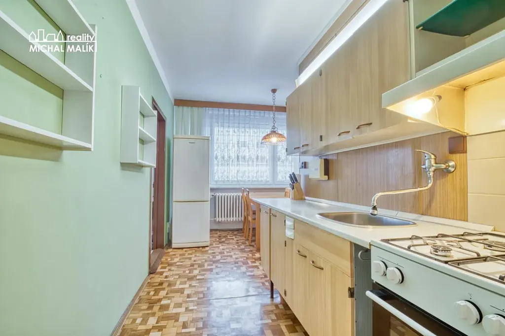 Nabízíme k pronájmu prostorný byt o dispozici 3+1 s lodžií o velikosti 72 m2, nacházející se na ulici Třída 1. máje v Hranicích. Byt je situován ve 3. nadzemním podlaží zrevitalizovaného panelového domu s výtahem, který prošel kompletní rekonstrukcí má zateplenou fasádu, plastová okna, novou střechu i modernizované výtahy. Samotný byt je v původním, udržovaném stavu, je částečně zařízený a disponuje umakartovým bytovým jádrem. Dispozici tvoří vstupní chodba, ze které je samostatný vstup na WC, do komory, do tří neprůchozích pokojů a do kuchyně, která je průchozí do obývacího pokoje se dvěma vstupy.