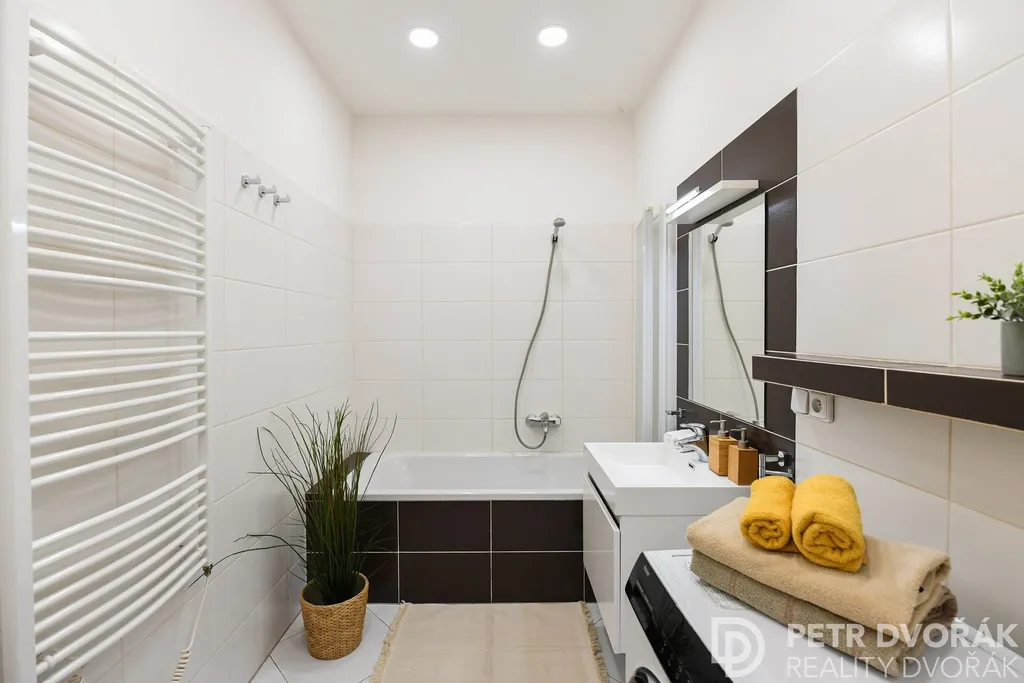 Vstupní předsíň s novou plovoucí podlahou nabízí dostatek úložného prostoru a praktickou komoru / šatnu. Součástí předsíně je i neobvyklý bonus – vlastní infrasauna pro regeneraci v soukromí domova. Samostatná kuchyň disponuje moderním vybavením a pohodlným prostorem jak pro vaření, tak pro každodenní stolování. Obývací pokoj zaujme množstvím přirozeného světla a renovovanými parketami, které dodávají interiéru teplý a nadčasový charakter. Ložnice se dvěma okny poskytuje klidné zázemí s výhledem do dálky. Třívrstvá komorová okna v celém bytě zajišťují vynikající tepelnou i hlukovou izolaci. Koupelna s vanou a pračkou je obložena novou dlažbou a obklady, toaleta je řešena samostatně.