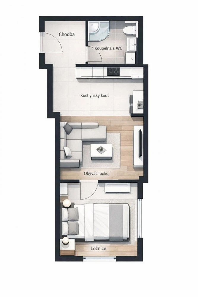 - obývací pokoj s kuchyňským koutem