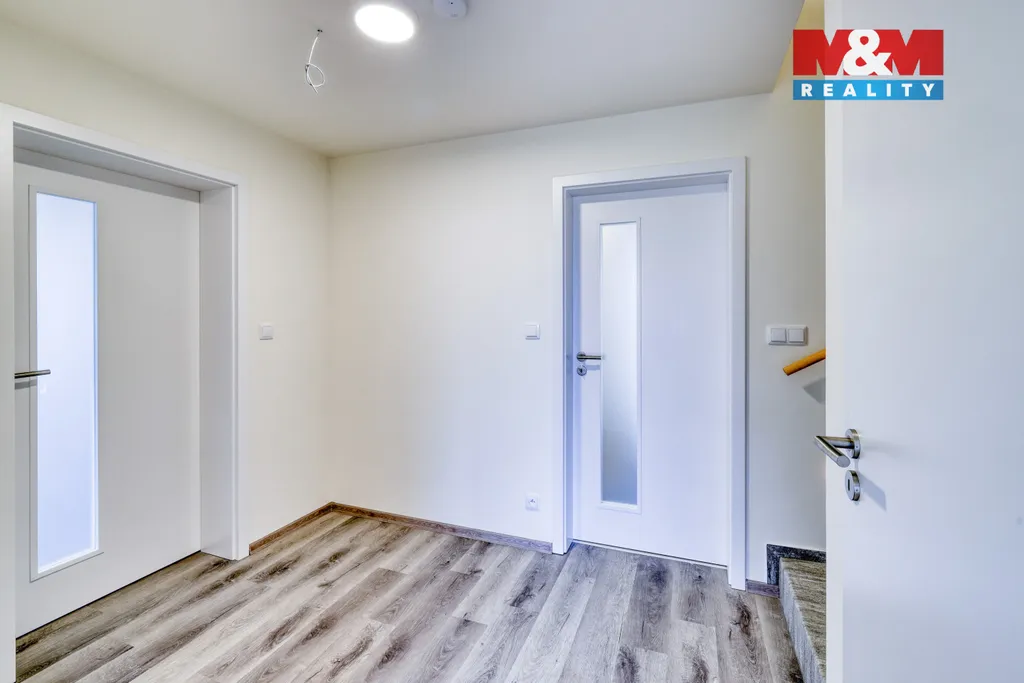 Prodej novostavby rodinného domu 5+kk v obci Drhovy, skvělá dostupnost do Prahy. Užitná plocha domu 140 m². Plocha pozemku 859 m².