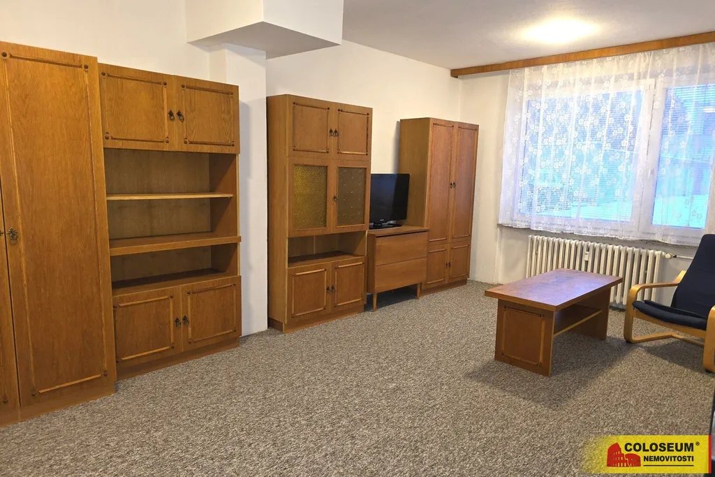 - Prostorný pokoj vybavený obývací stěnou s dostatkem úložného prostoru, TV a konferenčním stolkem. Pokoj má zcela nový koberec.