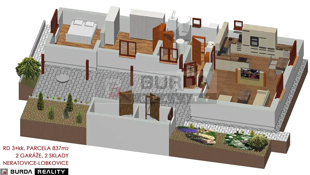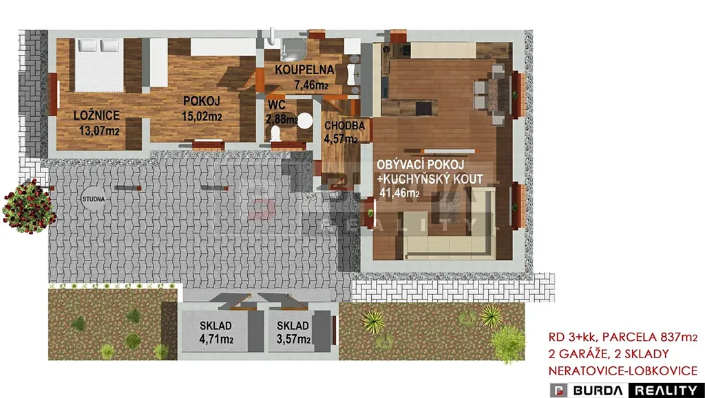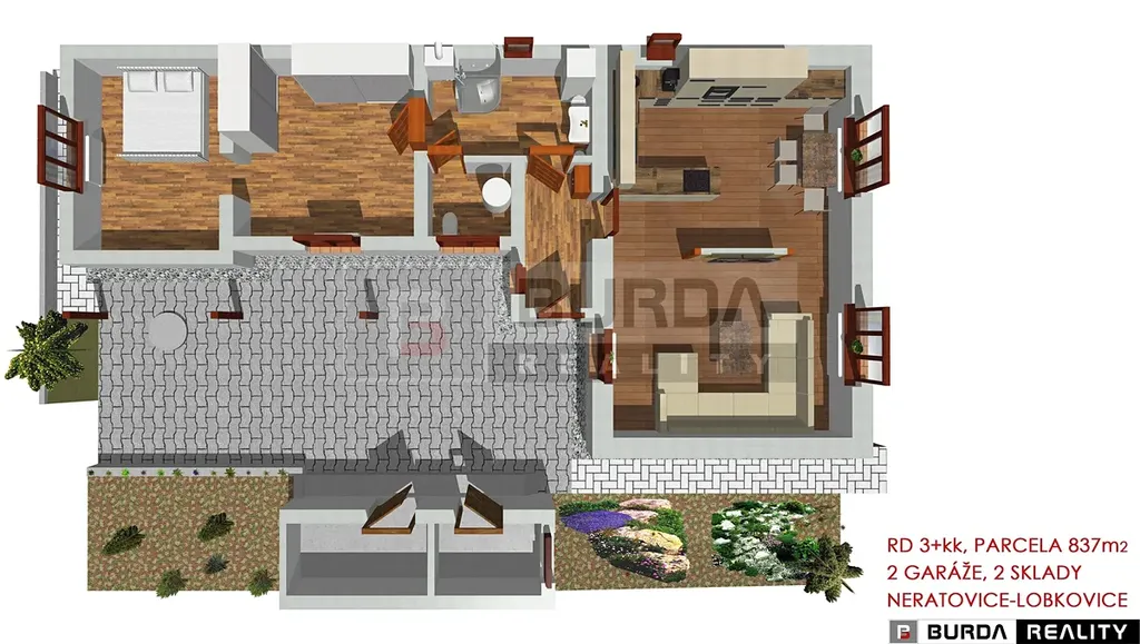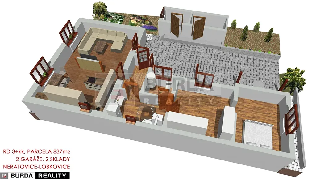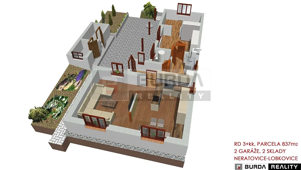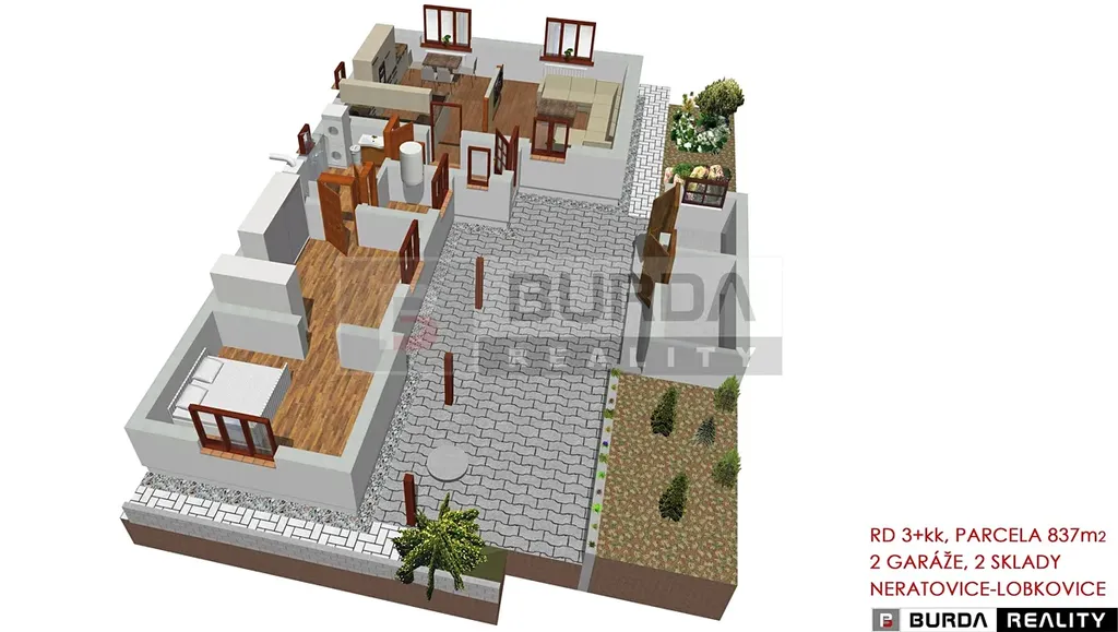 Exkluzivně Vám nabízíme k prodeji rodinný dům 3+kk se zahradou, garáží a dílnou, o celkové ploše parcel 837 m2 v obci Neratovice – Lobkovice.