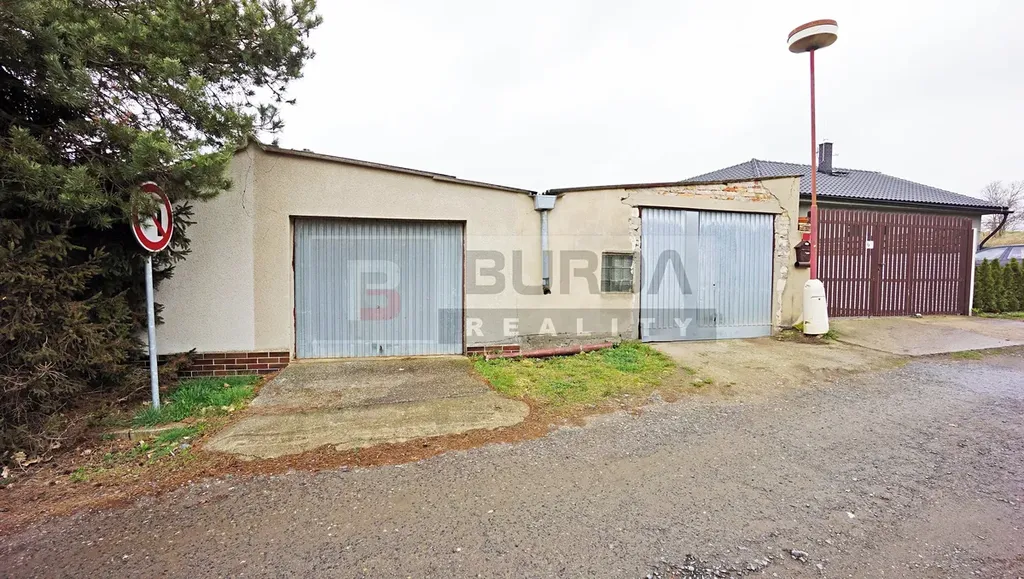 Garáž a přístavba garáže (dílna) je z plných cihel, na betonové desce, zastřešena na dř. trámcích s azbesto-cementovou vlnovkou, s elektřinou, celkem pro 3 auta.
