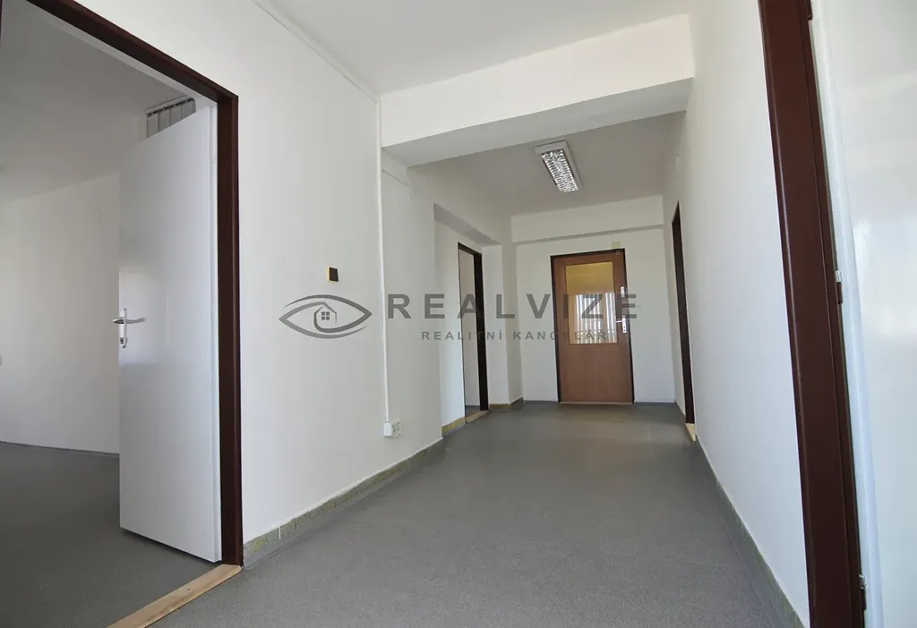 Jedná se o dvě průchozí kanceláře (18,2 a 17,4 m2) a tři samostatné (18,8, 17,8 a 16,5 m2) a náleží k nim samostatná uzamykatelná vstupní chodba (12,3 m2). Všechny kanceláře mají možnost napojení vody s umístěním umyvadla.