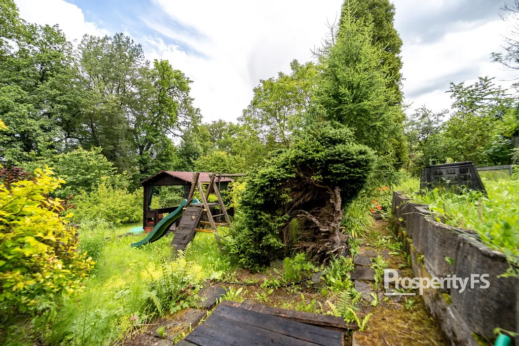 Chata o zastavěné ploše 17m², do které není zavedena elektřina, která je v řešení, řád se sezónní vodou je přiveden na pozemek. Zahrada, která je mírně svažitá a v katastru vedena jako zahrada o výměře 561m², zajištuje výborný předpoklad pro aktivní i relaxační odpočinek a dostatek prostoru pro bazén, trampolínu, pěstování ovoce i zeleniny