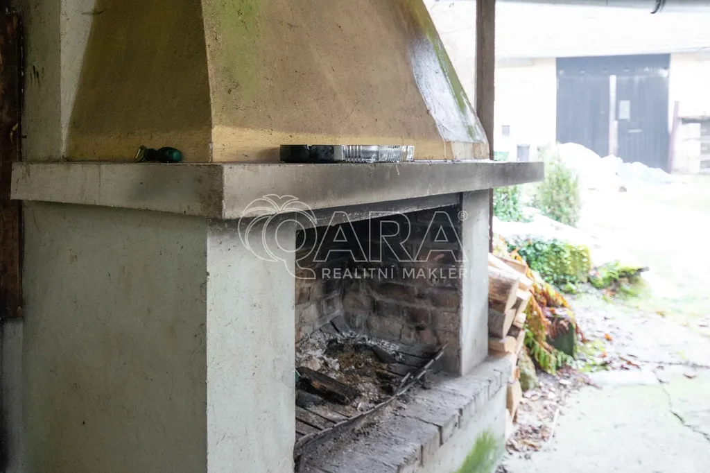 U domu stodola, několik skalních sklepů a pergola s grilovištěm. Před domem oplocená zahrádka.