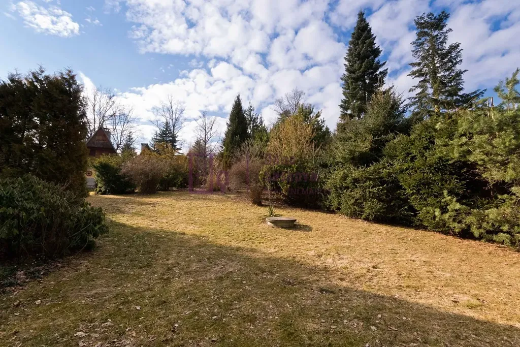Před chatou se nachází posezení s ohništěm, pozemek je částečně obklopen živým plotem, takže poskytuje jeho uživatelům soukromí.