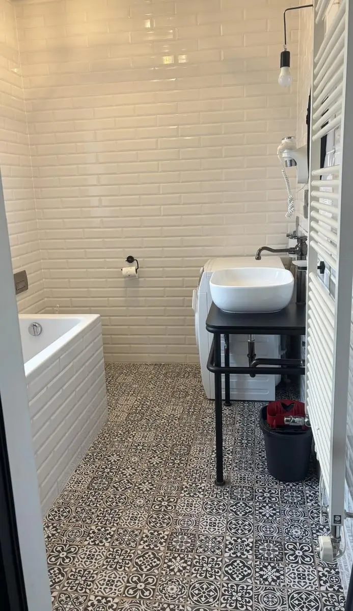 Dispozice zahrnuje velkorysý obývací prostor s kuchyňským koutem a jídelní částí, samostatnou ložnici, koupelnu a vstup na balkon s krásným výhledem na řeku a okolí. Kuchyň je vybavena kvalitními spotřebiči, byt nabízí dostatek úložných prostor a komfortní zázemí pro moderní městské bydlení.