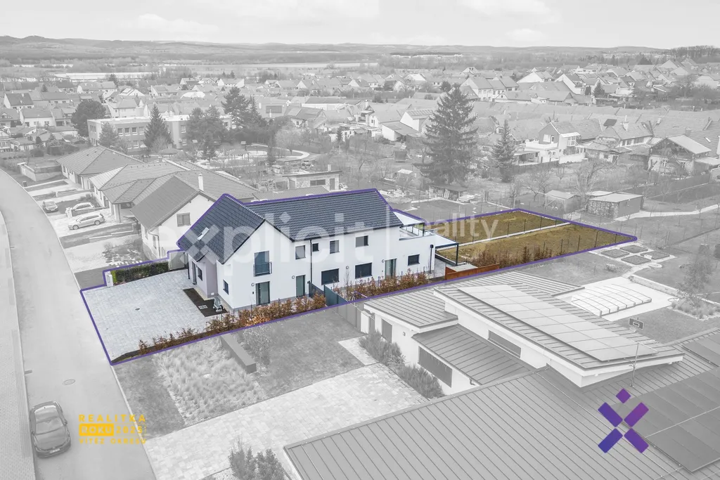 Velkorysá zahrada navazuje přímo na obytný prostor a vytváří přirozené prodloužení interiéru. V létě zde vznikne venkovní obývák, prostor pro děti nebo klidná relaxační zóna pod bioklimatickou pergolou. Moderní cihlová stavba s energetickou třídou B, tepelné čerpadlo, podlahové vytápění, klimatizace i venkovní žaluzie – to vše znamená nejen komfort, ale i nízké provozní náklady a dlouhodobou hodnotu nemovitosti.