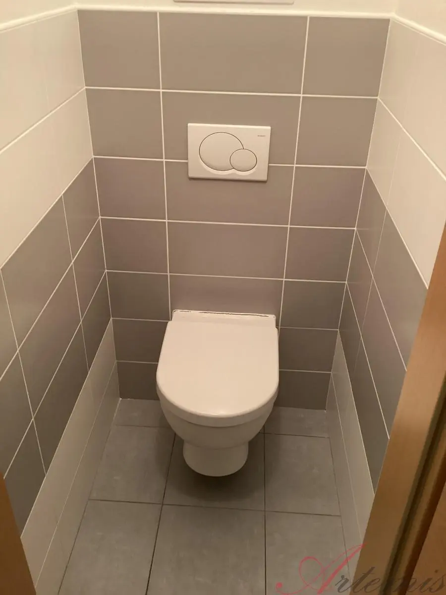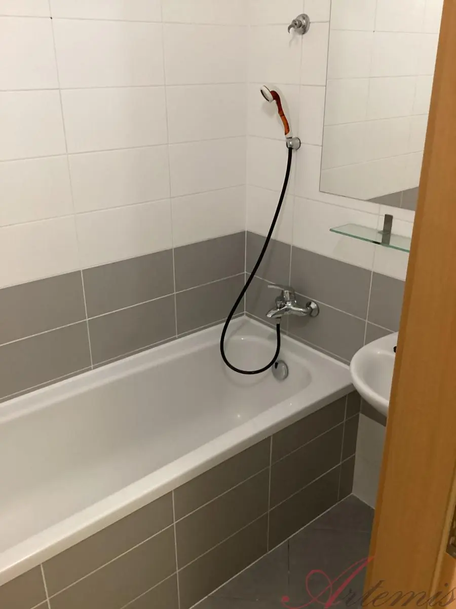 Dispozice bytu nabízí koupelnu s vanou, WC je samostatné.