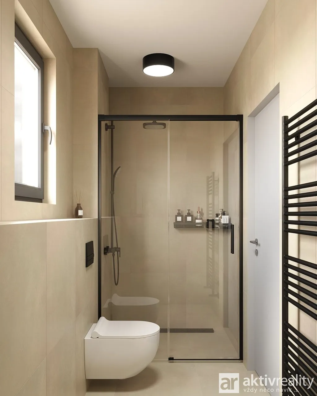 Horní podlaží o výměře 73,9 m² tvoří tři samostatné pokoje (12,8 m², 12,8 m² a 14,6 m²), šatna, komora a dvě koupelny. Toto řešení výrazně zvyšuje komfort užívání a umožňuje pohodlné fungování vícečlenné domácnosti bez kompromisů v soukromí.