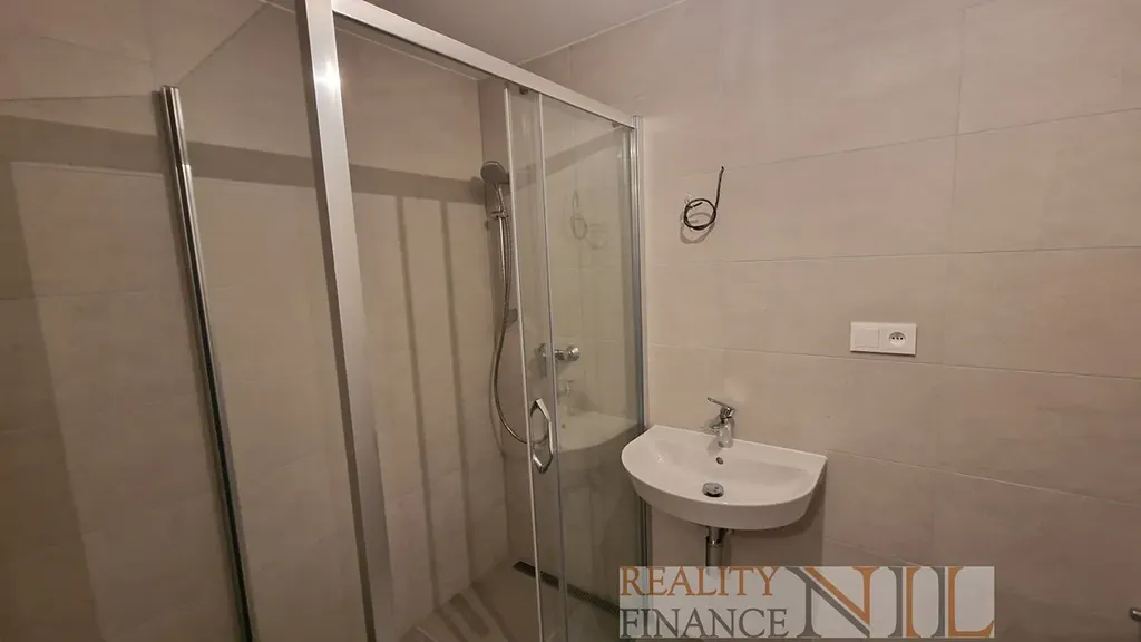 Byt je zařízený rohovou kuchyňskou linkou včetně spotřebičů (elektrická trouba, sklokeramická varná deska, digestoř, myčka nádobí, lednička), koupelna je se sprchovým koutem, podlahy plovoucí.
