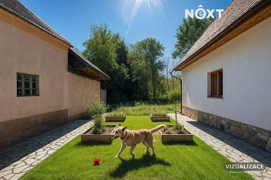 Na domě proběhla většina bouracích a přípravných prací. Dům nabízí výjimečný potenciál – lze dotvořit obytné plochy, pracovat s otevřenými krovy, vybudovat terasu nad stodolou a prostor využít pro rodinné bydlení, rekreaci či kombinaci s ateliérem/dílnou.