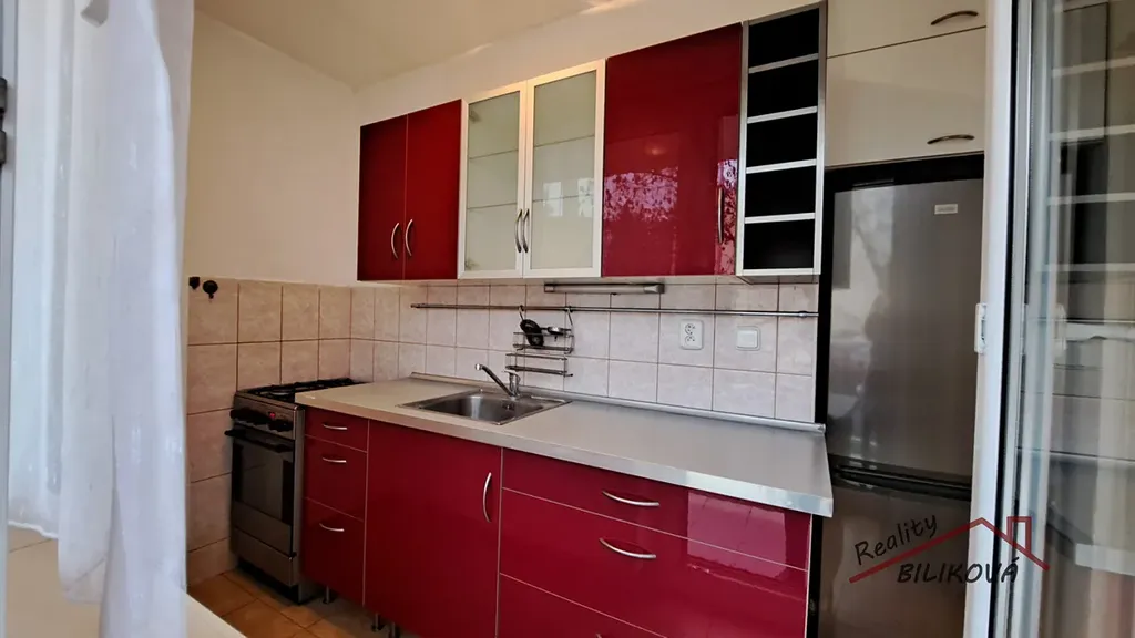 Dispozice bytu: předsíň, obývací pokoj se vstupem na lodžii, kuchyň se vstupem na druhou lodžii, ložnice, koupelna s WC.