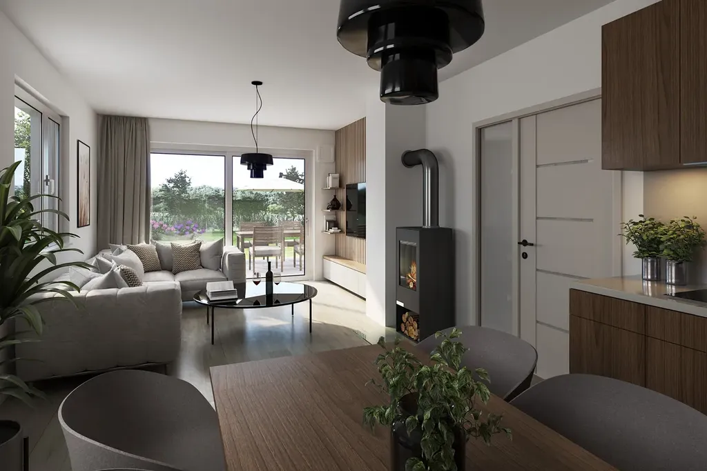 Rodinný dům K 120 je navržen jako jednopodlažní objekt s obytným podkrovím zastřešený sedlovou střechou. V rámci projektu Újezd u Brna je koncipován jako volně stojící dům, dvojdům nebo jako řadový dům. Dispozičně spadá do kategorie 5+kk. Součástí domu je garáž, která je od domu provozně oddělena. Hlavní vstup do objektu je z ulice do vstupní haly a dále pak do chodby se schodištěm, ze které je přístupný hlavní obytný prostor s jídelnou a kuchyňským koutem, dále koupelna s technickým zázemím a pokoj. Ve 2.NP jsou umístěny tři pokoje a koupelna.