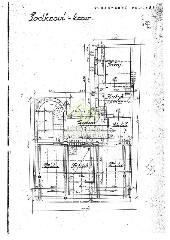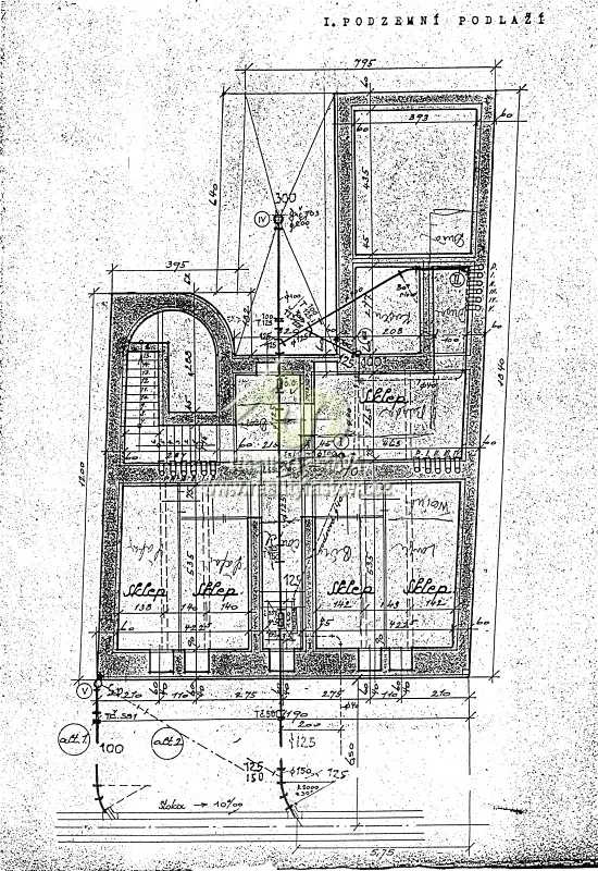Dům je kompletně podsklepen, je zde několik sklepních prostor ve 2 patrech, přičemž 2.PP je z části zasypáno.