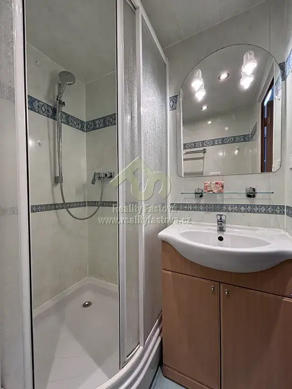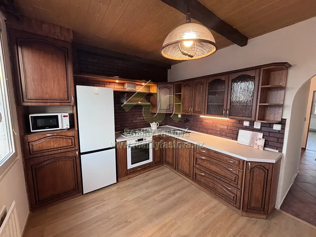 Byt je po částečně rekonstrukci a je dispozičně velmi dobře řešen. Má 3 samostatné neprůchozí pokoje, velkou čtvercovou vstupní předsíň, zděné jádro, kde se nachází koupelna se sprchovým koutem a umyvadlem, toaleta je samostatná. V prostorné kuchyni je k dispozici velká kuch.linka zbudovaná na míru do tvaru L, s vestavěným komplet novými spotřebiči a to s myčkou, lednicí s mrazákem, plyn.sporákem a el. troubou, digestoří (ta je původní), rychlovarnou konvicí a mikrovlnkou.