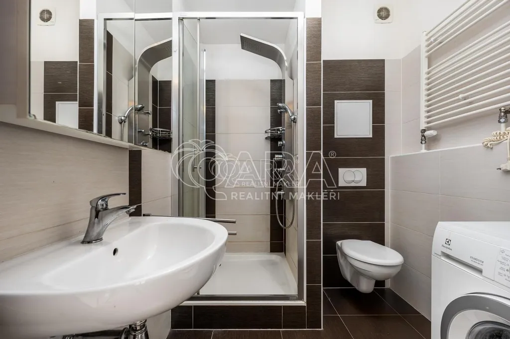 V bytě budete mít k dispozici skříňky, konferenční, televizní stolek, jídelní stůl a židle. Kuchyňská linka je vybavena vestavěnou lednicí s mrazákem, pečící troubou, varnou deskou a digestoří. Velká manželská postel je prakticky v bytě umístěna, tak aby z ní nebyl výhled do kuchyně. V koupelně je sprchový kout, umyvadlo, WC a pračka kombinovaná se sušičkou. Na chodbě je vestavná skříň. Pohovka na fotografiích není součástí vybavení. V místnosti je plovoucí podlaha a ve zbylých částech bytu je dlažba. Okana bytu s výhledem na travnatý parčík jsou orientována na ideální jižní stranu. Na terase budete moci využívat venkovní stůl a židle. Byt je nově vymalovaný.
