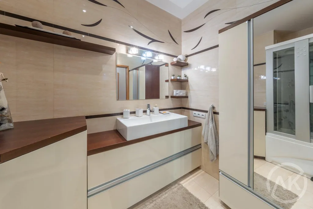 - nábytek je v bytě na míru a nemusíte si ho kupovat. Stačí postel. Super je i nestandardní sprchový box a masážemi a to v kombinaci vana/sprcha nebo vestavěné repro - můžete si k tomu pustit i nějaký podcast nebo hudbu. Benefitem jsou i vestavěné skříně nebo úložný prostor ve vstupní chodbě.