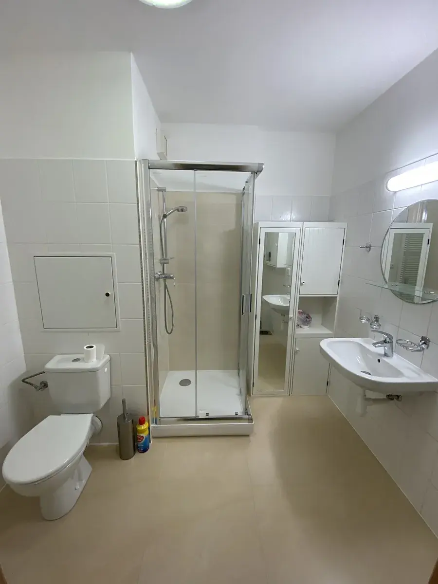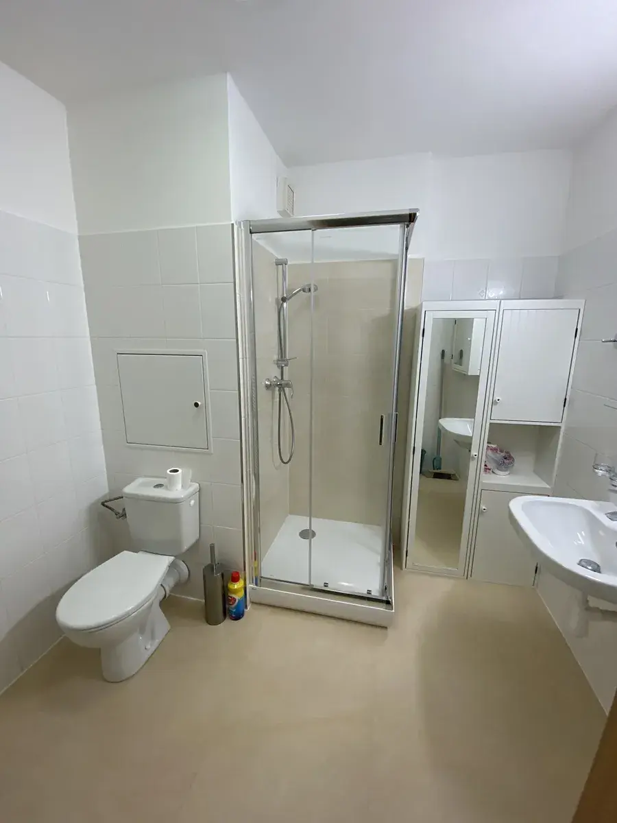 V předsíni jsou dvě vestavěné skříně. Byt má dobrou dispozici – z předsíně vcházíte do obou místností , koupelny s WC. Obytná místnost je velmi prostorná a je z ní východ na velkou terasu. V ložnici je také vestavěná skříň. Byt je po rekonstrukci koupelny, je bíle vymalován a v celém bytě jsou nové plovoucí podlahy. V okolí domu je udržovaná zeleň, keře, za domem je louka a les. Vhodné prostředí pro zimní radovánky dětí, procházky v klidné přírodě. Novostavba je v klidné lokalitě Starý Harcov s příhodným názvem Sluneční Stráň. Blízko je k liberecké přehradě, do Jizerek, do ZOO i botanické zahrady. Spojení do centra MHD č. 15. Prohlídku je možné uskutečnit kdykoliv po dohodě se současným nájemníkem. Byt bude volný od 1.4.2026. Holý nájem je 14.000,-Kč + služby (cca 3.700,-Kč + elektřina ), služby jsou na 2 osoby + kauce ve výši 28.000,-Kč+ provize RK ve výši 14.000,-Kč.
