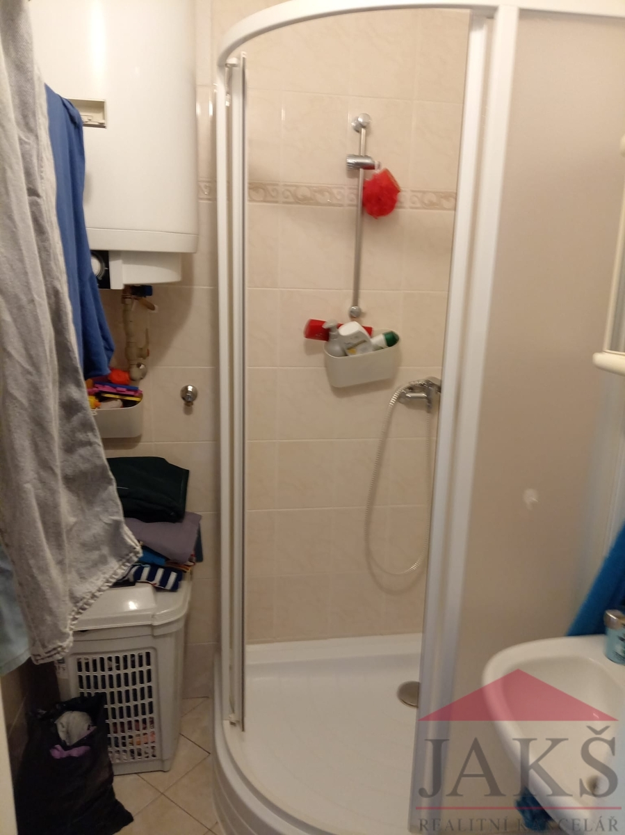 Popis: chodba (vest. skříně), samostatné WC, koupelna (sprchový kout, umyvadlo se zrcadlem, vývody na pračku, el. boiler), kuchyně s jídelnou (kuch. linka s HV troubou), prostorný obývací pokoj a 2x ložnice (skříně).