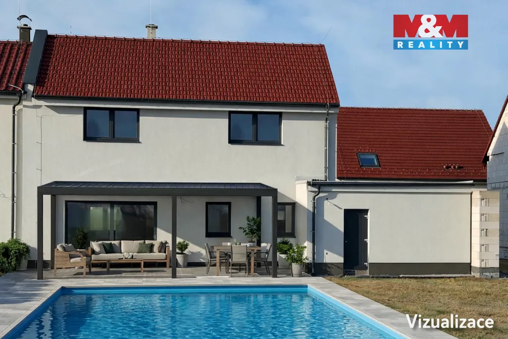Prodej moderní novostavby rodinného domu o dispozici 4+kk s garáží v klidné části obce Hrušky u Slavkova.