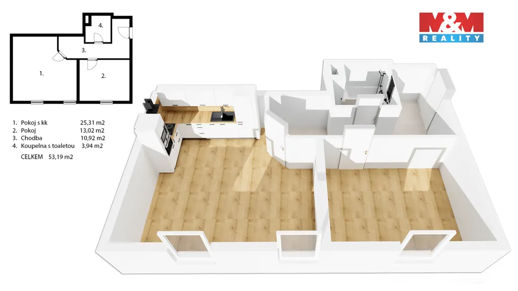 Nabízíme k prodeji prostorný byt 2+kk, který se nachází v přízemí bytového domu z roku 2011 s energetickou třídou C. Byt má užitnou plochu 53,19 m² a je vhodný jak k vlastnímu bydlení, tak jako investice.
