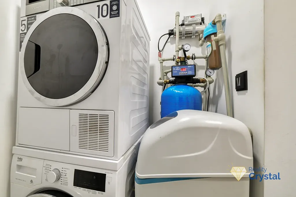 Voda je z vlastního 80 m vrtu a díky filtraci v domě, voda má kvalitu kojenecké vody, přípojka na obecní řad je na hranici pozemku před domem a dům je připraven, v případě, že se tak rozhodne nový majitel, k připojení.