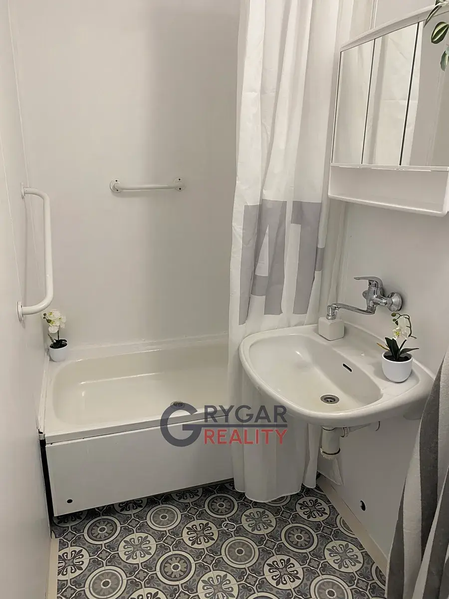 Námi nabízený byt 2+kk/L (45 m2 + velká lodžie 7 m2) v původním, ale udržovaném stavu se nachází v 3.NP/ z 10.NP, vedle bytu vlastní komora (1,22 m2), v přízemí domu vlastní sklepní kóje (1,40 m2). Dispozice bytu: vstupní chodba (6,37 m2) do tvaru "L", vpravo samost. WC (1 m2) a koupelna (2,16 m2) s přípojkou pro pračku. Naproti vchodu ložnice (12 m2) s oknem na lodžii. Vpravo vstupujeme do obývacího pokoje (15,45 m2), který je průchozí do kuchyně (5 m2), kde byla vyměněna kuchyňská linka za novou v bílém provedení. Z obývacího pokoje je vstup francouzskými dveřmi na lodžii (7 m2), která je přes oba pokoje a orientována na východ. V celém bytě plovoucí nové podlahy, topení dálkové ústřední.