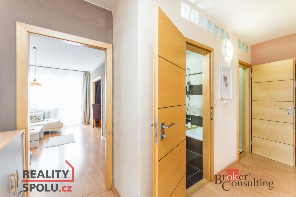 Ložnice i druhý pokoj jsou neprůchozí, což ocení rodina i ti, kdo potřebují pracovnu nebo dětský pokoj. Samostatné WC je oddělené od koupelny. Velkou výhodou tohoto bytu je jeho orientace na tři světové strany, díky čemuž je byt po celý den příjemně prosvětlený a působí velmi vzdušně.