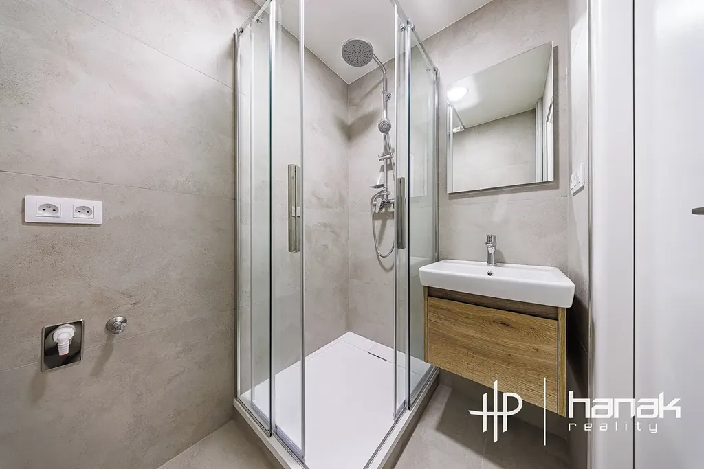 Při vstupu do bytu uvidíte zádveří se vstupy do koupelny se sprchovým koutem a na samostatnou toaletu. Z chodby je dále přístup do kuchyně a jednotlivých pokojů. V bytě je instalovaná nová kuchyňská linka včetně vestavěných spotřebičů a dostatkem úložných skříněk. Rekonstrukce bytu byla pojata v duchu minimalismu s důrazem na kvalitu v přirozeném tónu.