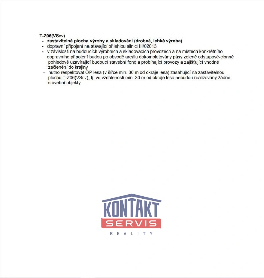 Pozemek je zařazen v územním plánu a nabízí mimořádně široké spektrum využití. Minimálně 9 000 m² pozemku je oficiálně zahrnuto v plochách pro výrobu a sklady, což vám otevírá dveře k realizaci vašich podnikatelských záměrů bez zdlouhavého čekání na změny územního plánu.