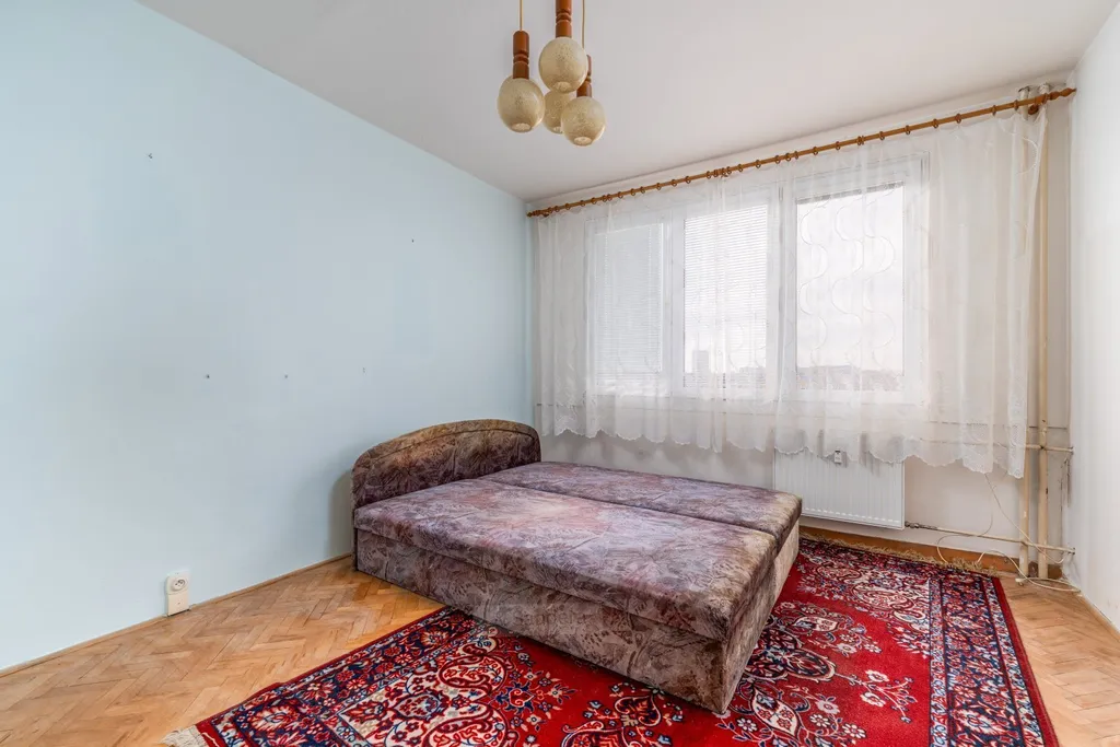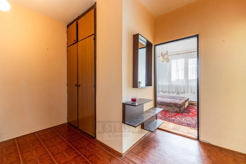Byt je v původním stavu, což nabízí ideální příležitost k rekonstrukci dle vlastních představ. Dispozice zahrnuje prostornou vstupní chodbu, praktickou skladovací komoru, původní bytové jádro, samostatnou ložnici a světlý, prostorný obývací pokoj. Kuchyně je řešena samostatně.