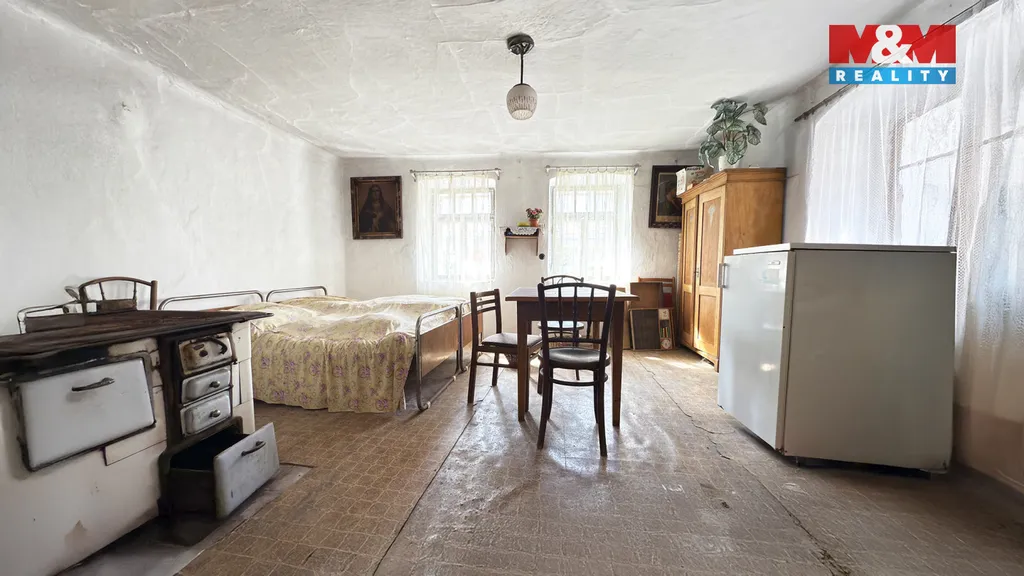 Předmětem prodeje je i chalupa ze 20. let 20. stolení na stejném pozemku, která má užitnou plochu cca 74 m² a dispozici 1+1. Tudíž nabízíme prodej dvou nemovitostí za jednu cenu.