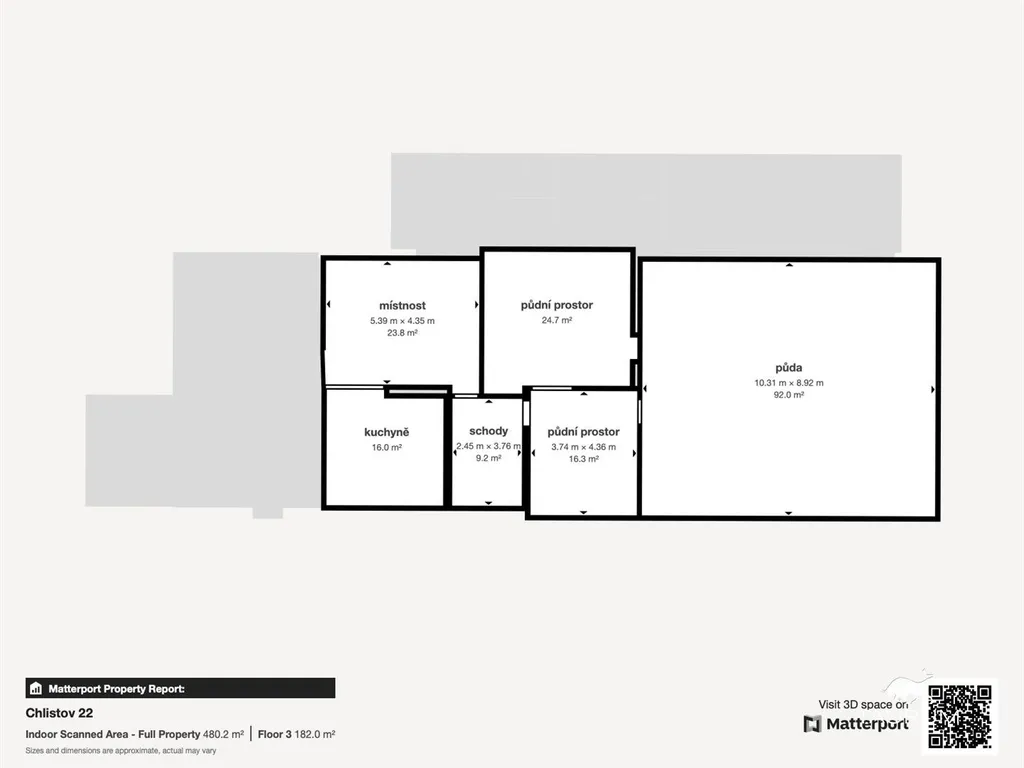 > Podkroví – 172 m² (2 pokoje, možnost rozšíření)