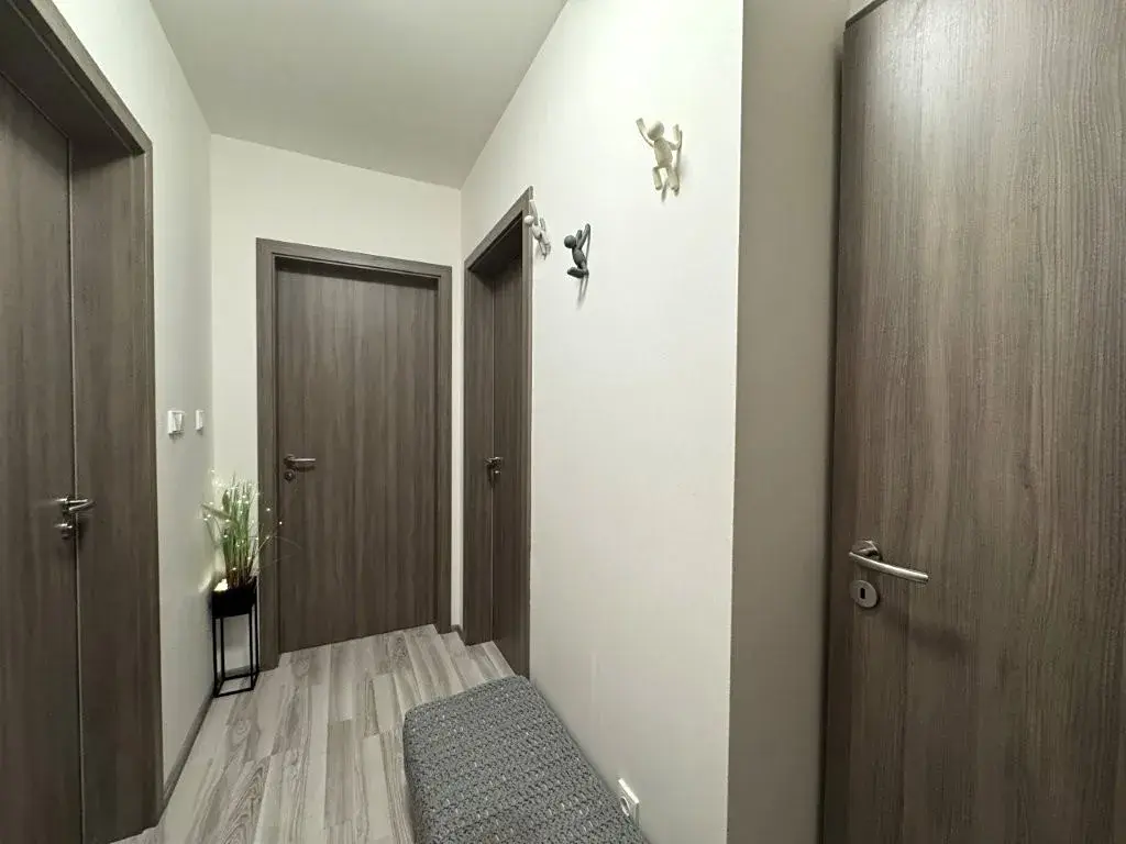 Součástí pronájmu je komora umístěná přímo naproti bytu (3,10 m²) a prostorné garážové parkovací stání.