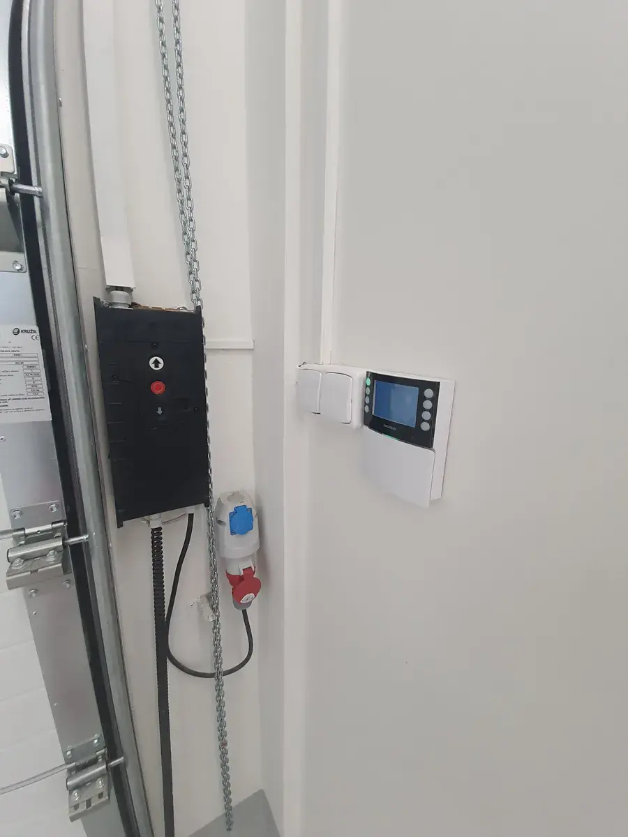 - sekční vrata s integrovanými vstupními dveřmi - otevíratelná klíčem nebo GSM modulem