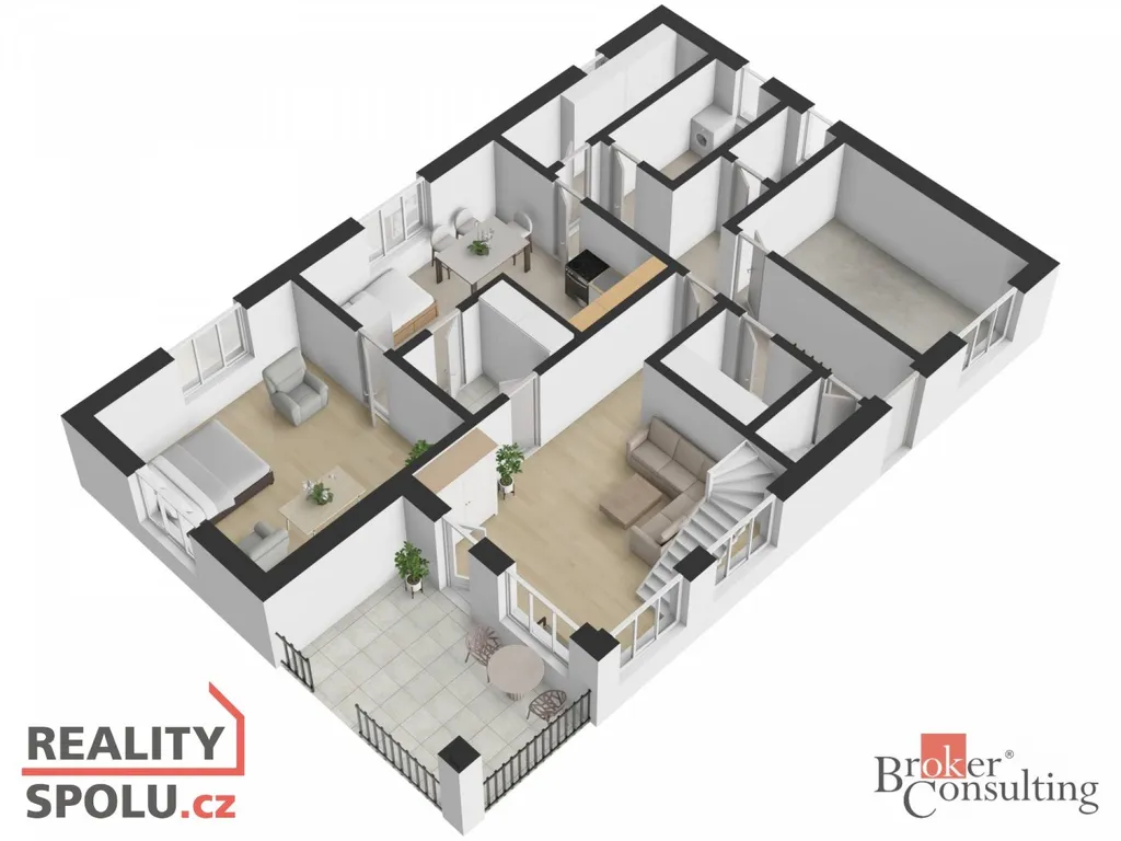 Dům nabízí celkovou užitnou plochu 280m2 a díky třem podlažím poskytuje opravdu velkorysý prostor pro vícečlennou rodinu, dvougenerační bydlení nebo kombinaci bydlení s podnikáním.