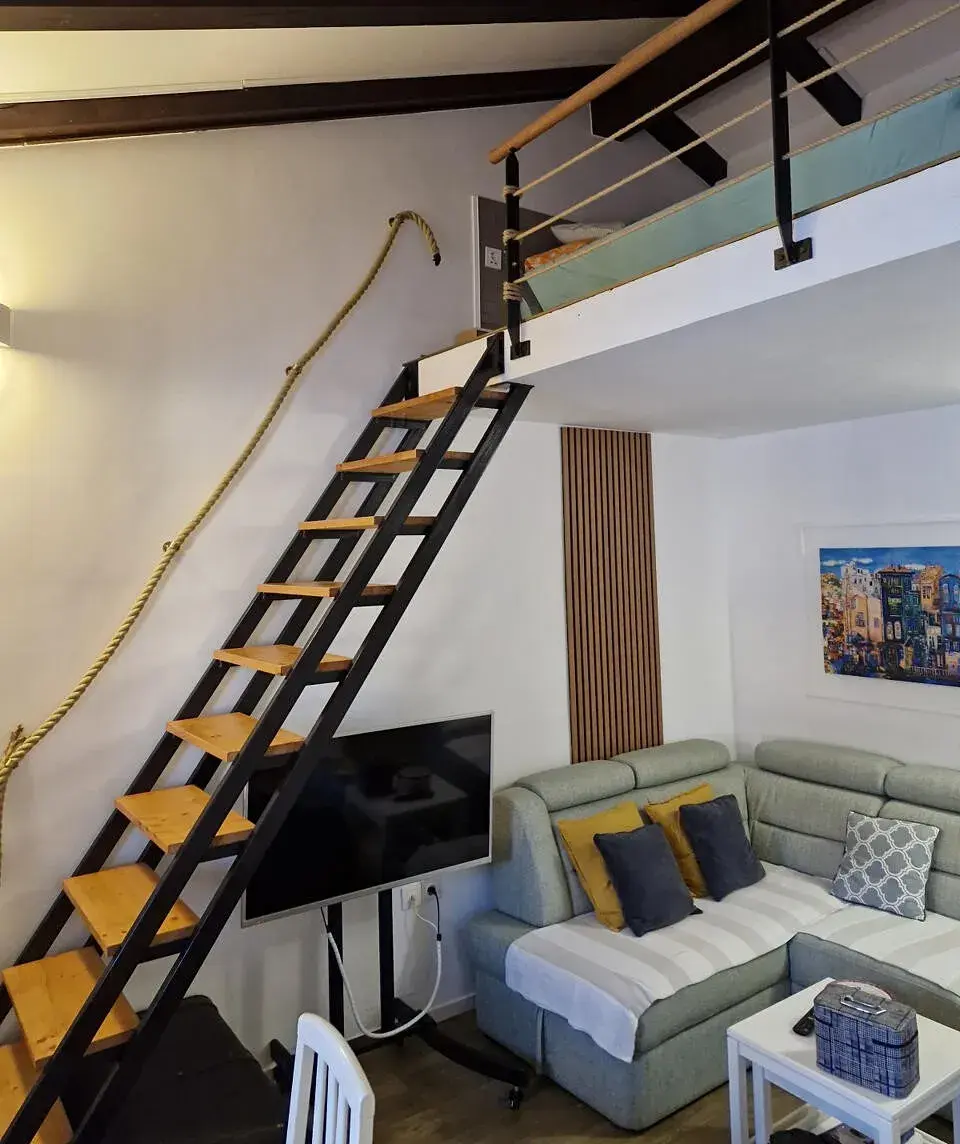 Nabízí se k prodeji plně a vkusně zařízený byt ve 3. patře o celkové ploše 30 m² + galerie cca 14 m². Byt má částečný výhled na moře, které je vzdálené pouhých 50 m, zatímco na pláž dojdete příjemnou procházkou za cca 5 minut.