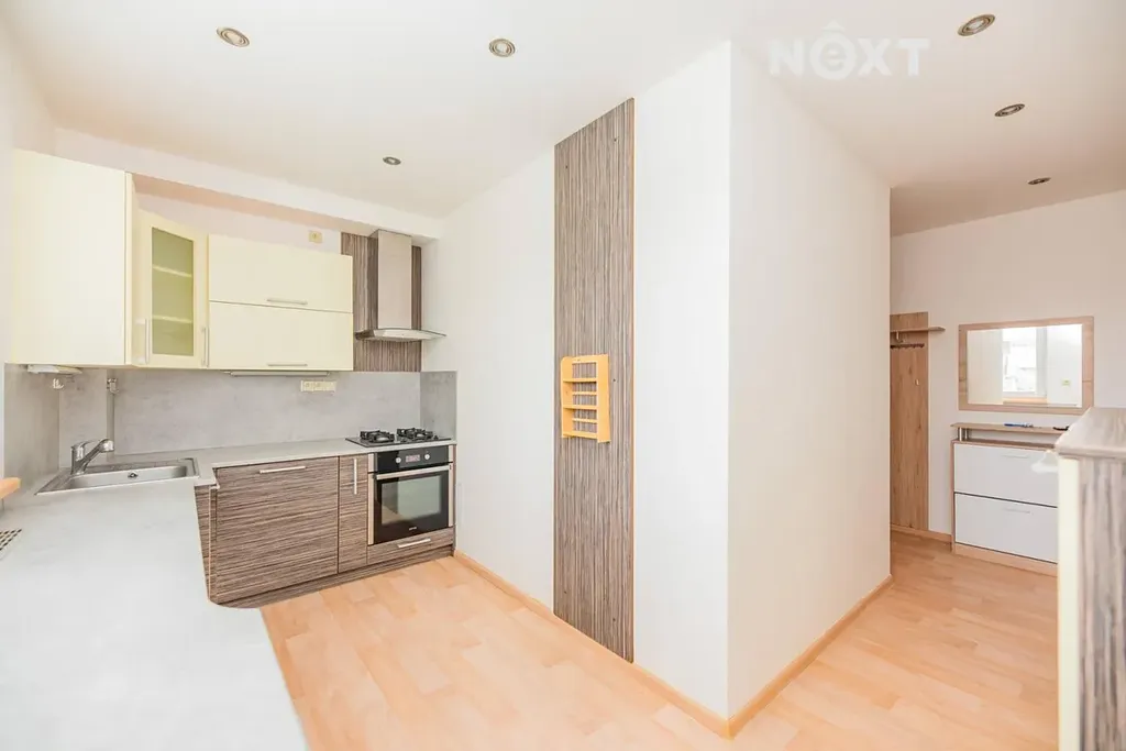 V kuchyni je prostorná linka s vestavěným plynovým sporákem, elektrickou troubou a myčkou. Na chodbě jsou dvě vestavěně skříně. Byt zůstane částečně vybaven, tak jak vidíte na fotografiích.