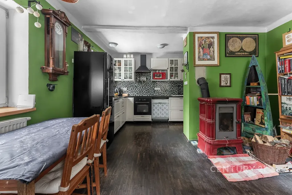 Vytápění: Elektrokotel (nové rozvody a radiátory) v kombinaci s krbovými kamny. Komín byl nově vyvložkován na podzim 2024.