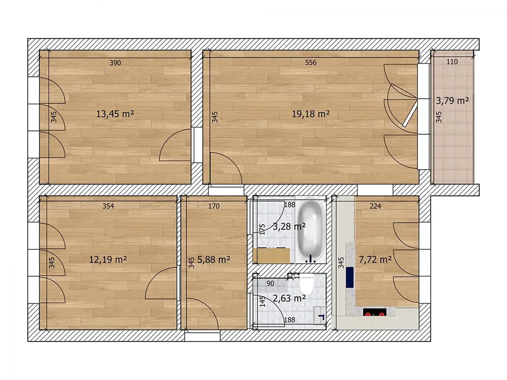 Světlo a sluníčko si v bytě budete užívat každý den, jelikož byt je orientován na východní a západní stranu.