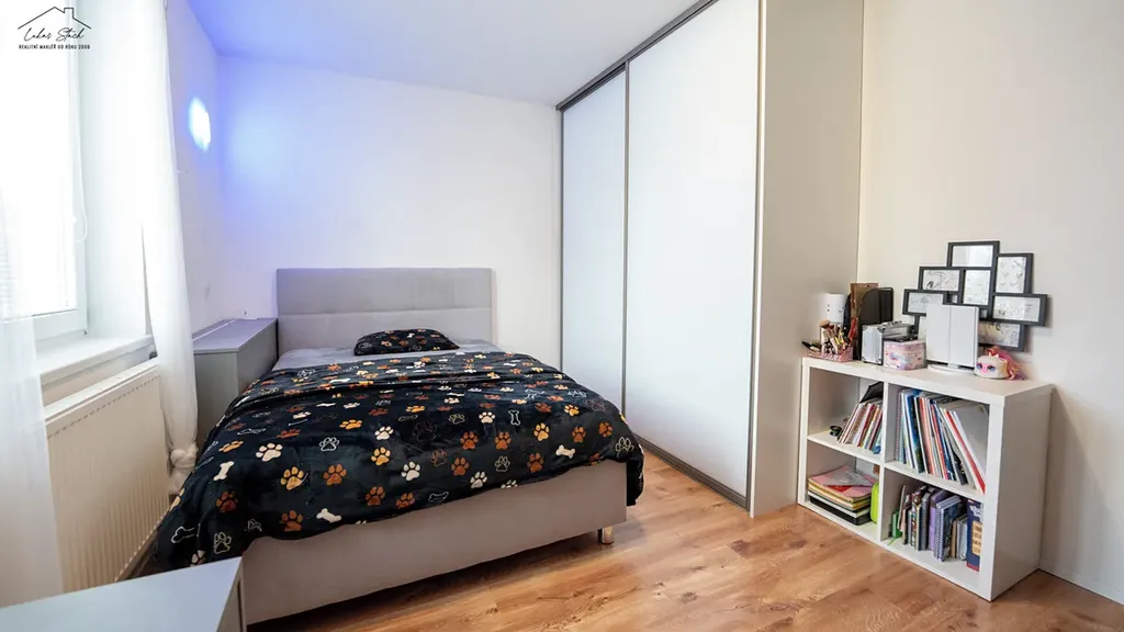 Dva pokoje mají téměř 14 m², takže nejde o žádné malé místnosti, ale o plnohodnotné dětské pokoje nebo ložnici. Třetí pokoj o velikosti 11 m² může sloužit jako pracovna, pokoj pro hosty nebo menší dětský pokoj.