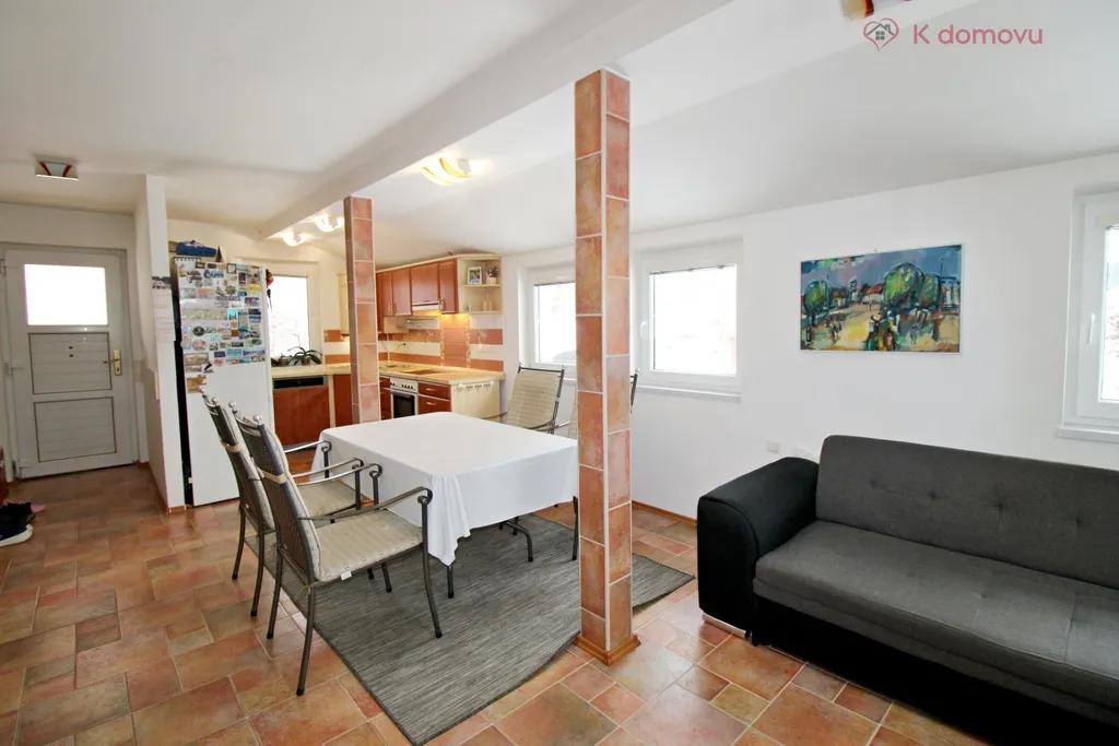 Hlavní obytná místnost navazující na kuchyňský kout tvoří jádro domu. Z prostorného obýváku je vstup do dvou samostatných pokojů a koupelny spojené s WC. Vně domu se nachází dílna.