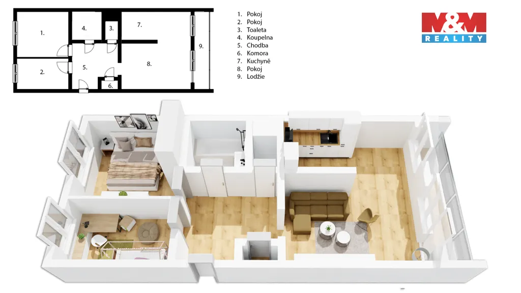 Prodej bytu v osobním vlastnictví 3+1 o velikosti 74 m² ve 2. patře ze 4 v klidné části Prahy 8 – Bohnic, ulice Dolákova. K bytu náleží lodžie 7 m² a sklep 2 m², dále jsou k dispozici dvě praktické komory. V domě lze využívat kolárnu, sušárnu, mandl i dílnu. Byt je ve velmi dobrém stavu, disponuje novou nadstandardní kuchyňskou linkou se spotřebiči a nabízí světlé, funkčně řešené bydlení s dostatkem úložných prostor. Dům je po revitalizaci, má udržované společné prostory a bezproblémové parkování v okolí domu. Velkou předností je klidné prostředí plné zeleně – les a přírodní park Drahaň jsou jen pár metrů od domu, stejně jako stezky vedoucí k Vltavě. V docházkové vzdálenosti se nachází kompletní občanská vybavenost, školy, školky, obchody, poliklinika i OC Krakov. Výborná dostupnost MHD na metro C – Kobylisy. Byt je vhodný jak pro vlastní bydlení, tak jako investice. Těšíme se na Vás na prohlídce.